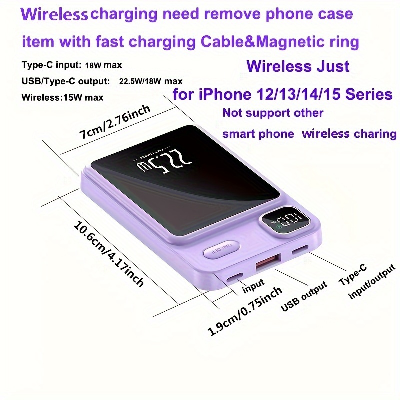 MagSafe 10000mAh Magnetic Wireless Power Bank – Portable Battery Pack for iPhone 16/15/14/13/12